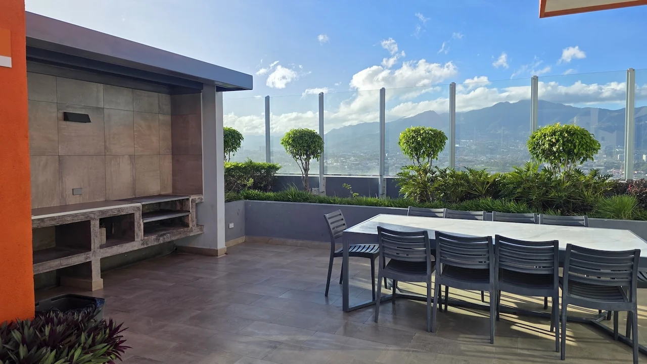 Se vende moderno apartamento en Ulloa de Heredia, en el Condominio Bambú 106, ubicado en el piso 16 con una espectacular vista hacia las montañas del norte; cuenta con 92 m² totales, 3 habitaciones, 2 baños, sala-comedor, cocina con sobres de granito, área de lavado y se entrega semi-amoblado con línea blanca incluida. El apartamento dispone de parqueo subterráneo para 2 vehículos, bodega y acabados de calidad en porcelanato, además de seguridad 24/7 con acceso controlado y múltiples amenidades tipo club como piscina temperada, gimnasio totalmente equipado, rooftop panorámico, áreas BBQ, zonas recreativas, parque para mascotas y plaza comercial dentro del condominio. Su ubicación estratégica en Lagunilla permite fácil acceso a zonas francas, centros comerciales, universidades, hospitales y aeropuertos, convirtiéndolo en una excelente opción tanto para vivir como para invertir, todo por un valor de ¢75,000,000 con opción de financiamiento bancario.